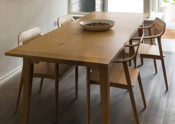 Here, a sensitive transformation and extension of an old stable block and linked barn create a new light and airy kitchen, dining and family space.