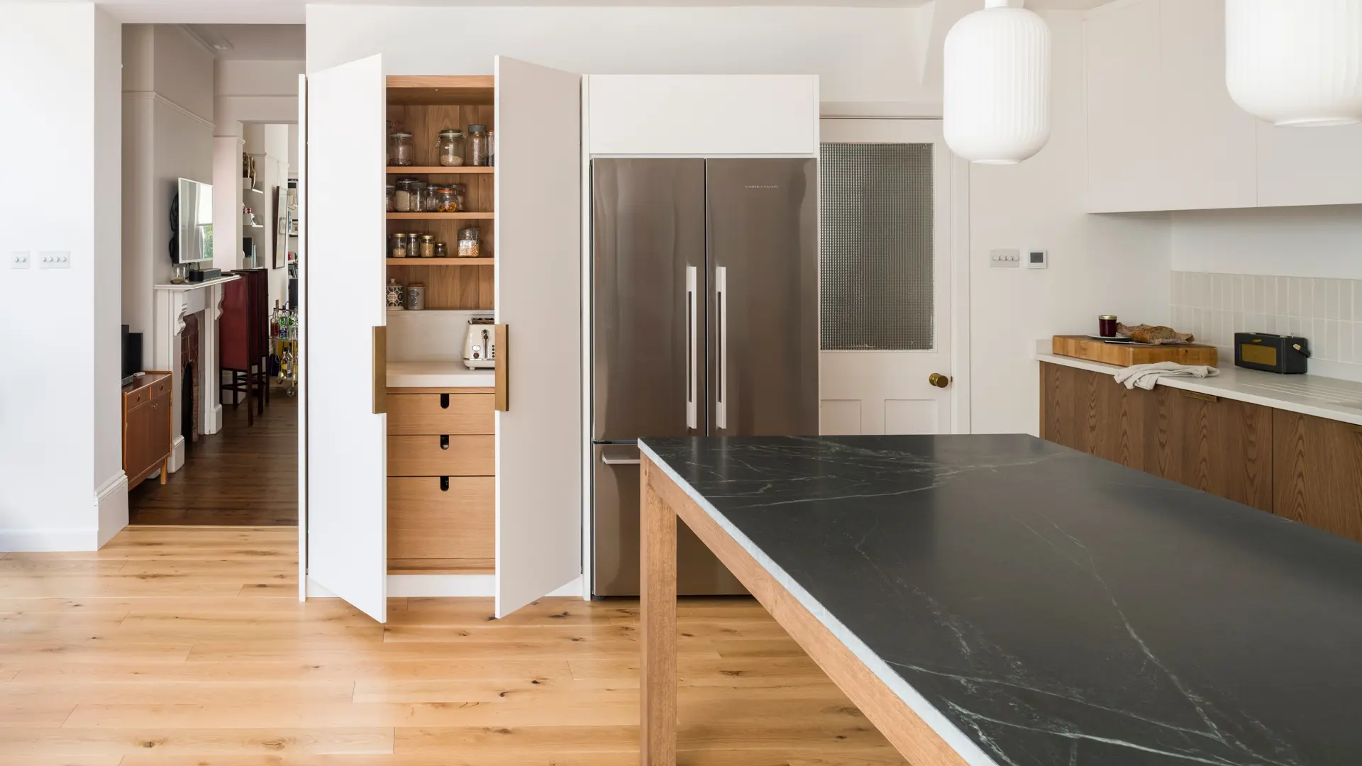 From London to Brighton. From idea to object. A kitchen that wears mid-century with ease. Oak with depth. Fenix with calm. Craft in the joints. Intelligence in the plan. A space that will soften and improve with use. As it should.