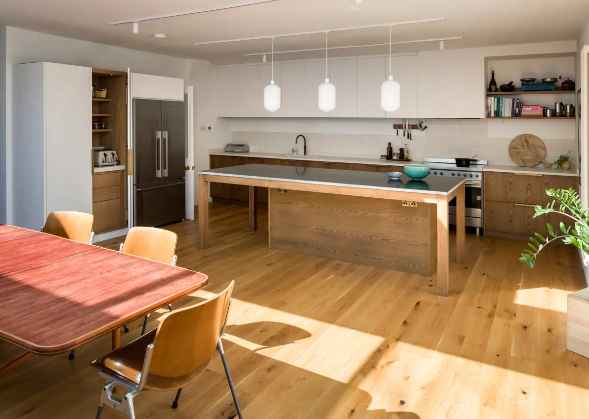 Quiet breakfasts in the fall of soft light. Homework spread across the island while something simmers. Friends gathered with a bottle open and those chairs pulled close. The design gets out of the way so the day can get on.