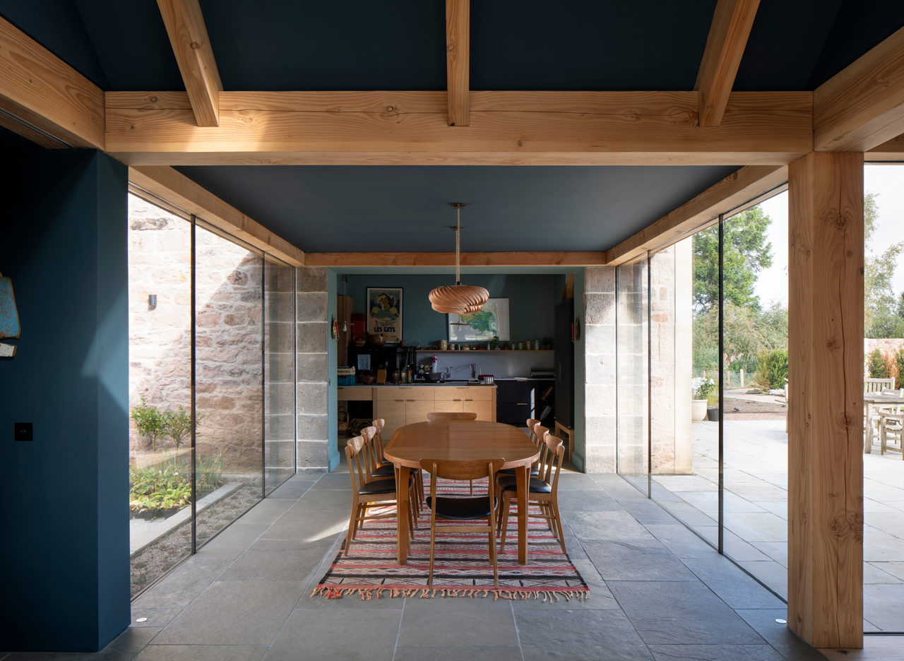 WT - The brief was not only to save the house, but to restore its spirit. Our design sought to create generous social spaces that foster a sense of living within the landscape. A new wing of living and dining areas extends from the Georgian core, framing a sheltered courtyard and opening to the gardens beyond. This strategy allowed the historic interiors to remain largely intact, while also providing the flexibility and functions that the original building could not.