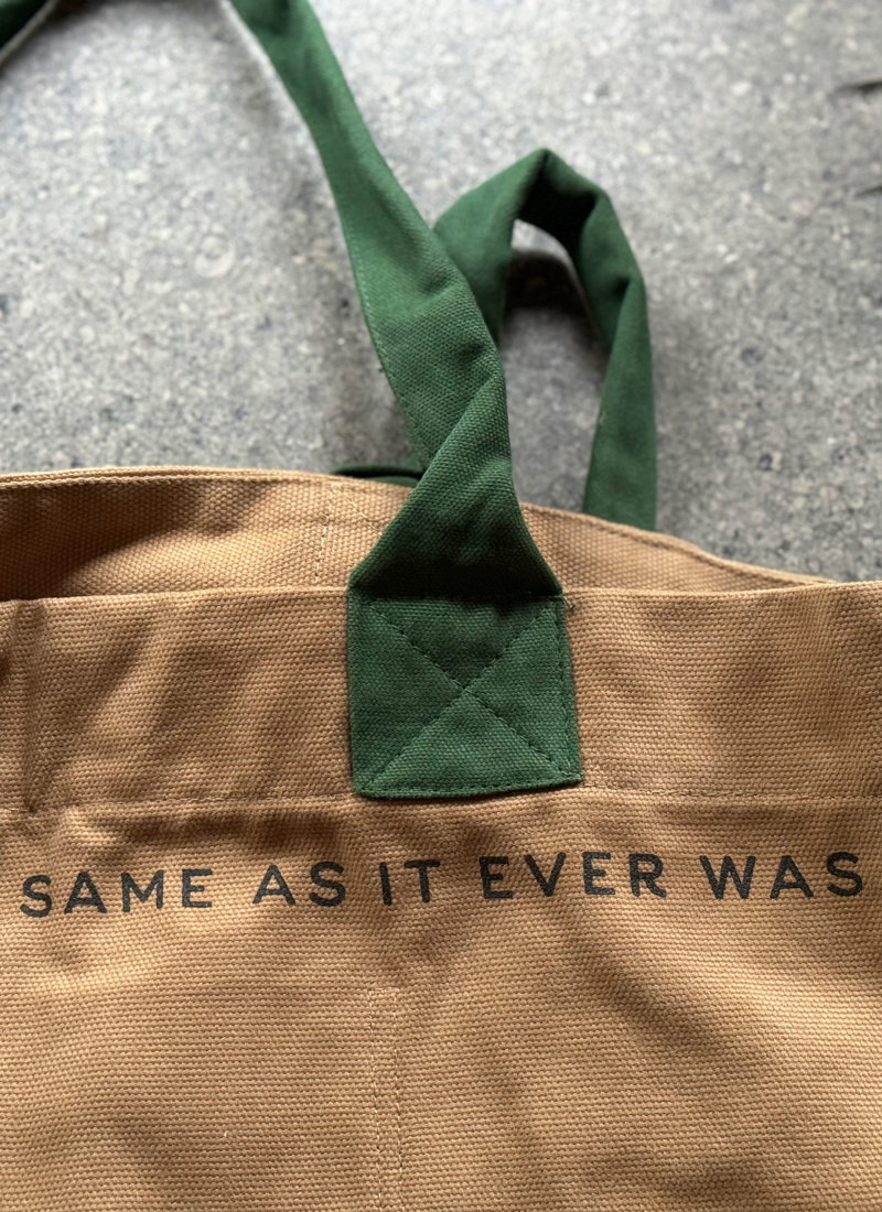 Why the cryptic line of text which has become a signature of the bag?