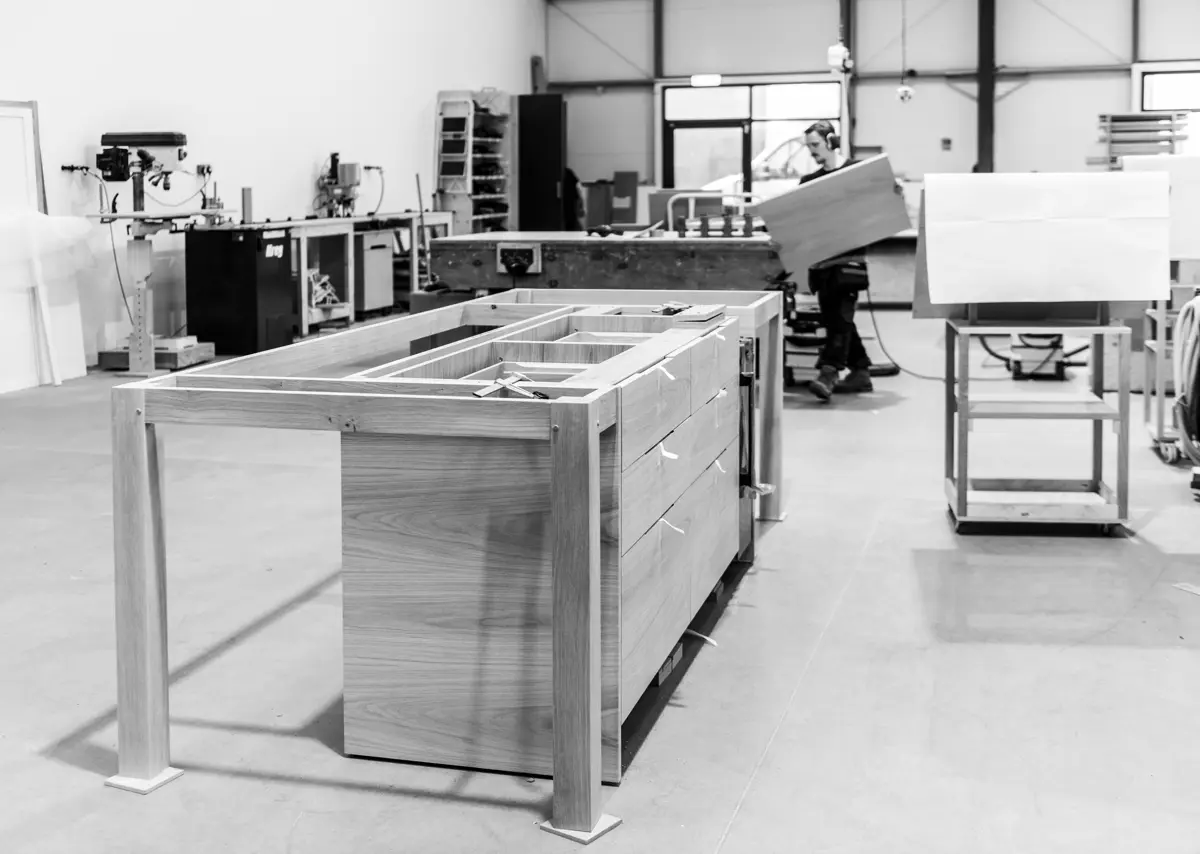 Walk in on any morning and you’ll hear it before you see it. The low thrum of machines, the soft rasp of tools against wood, band-sawn oak stacked and marked.