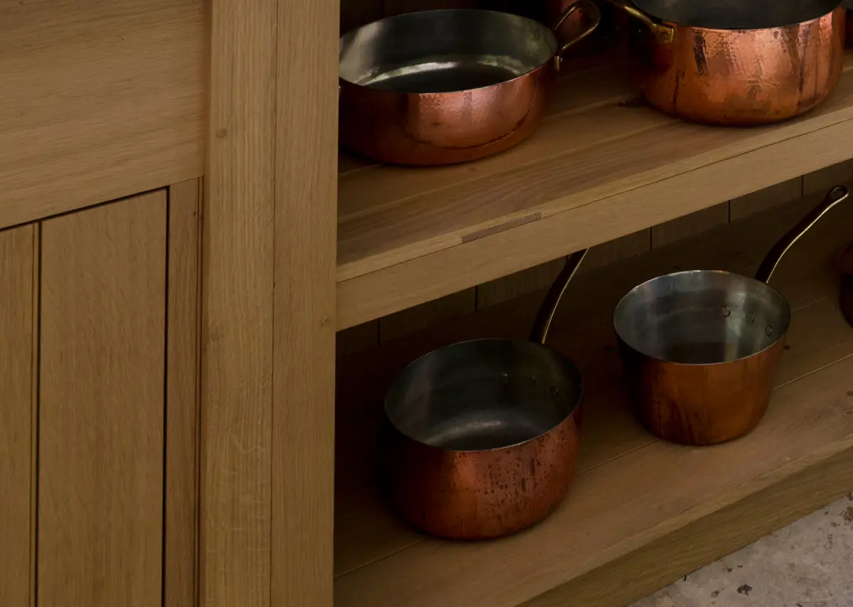 Even the unseen parts of our kitchens are built with care. Our carcasses are made from 19mm oak veneered birch plywood, chosen for its strength, durability, and beauty. No chipboard in sight.